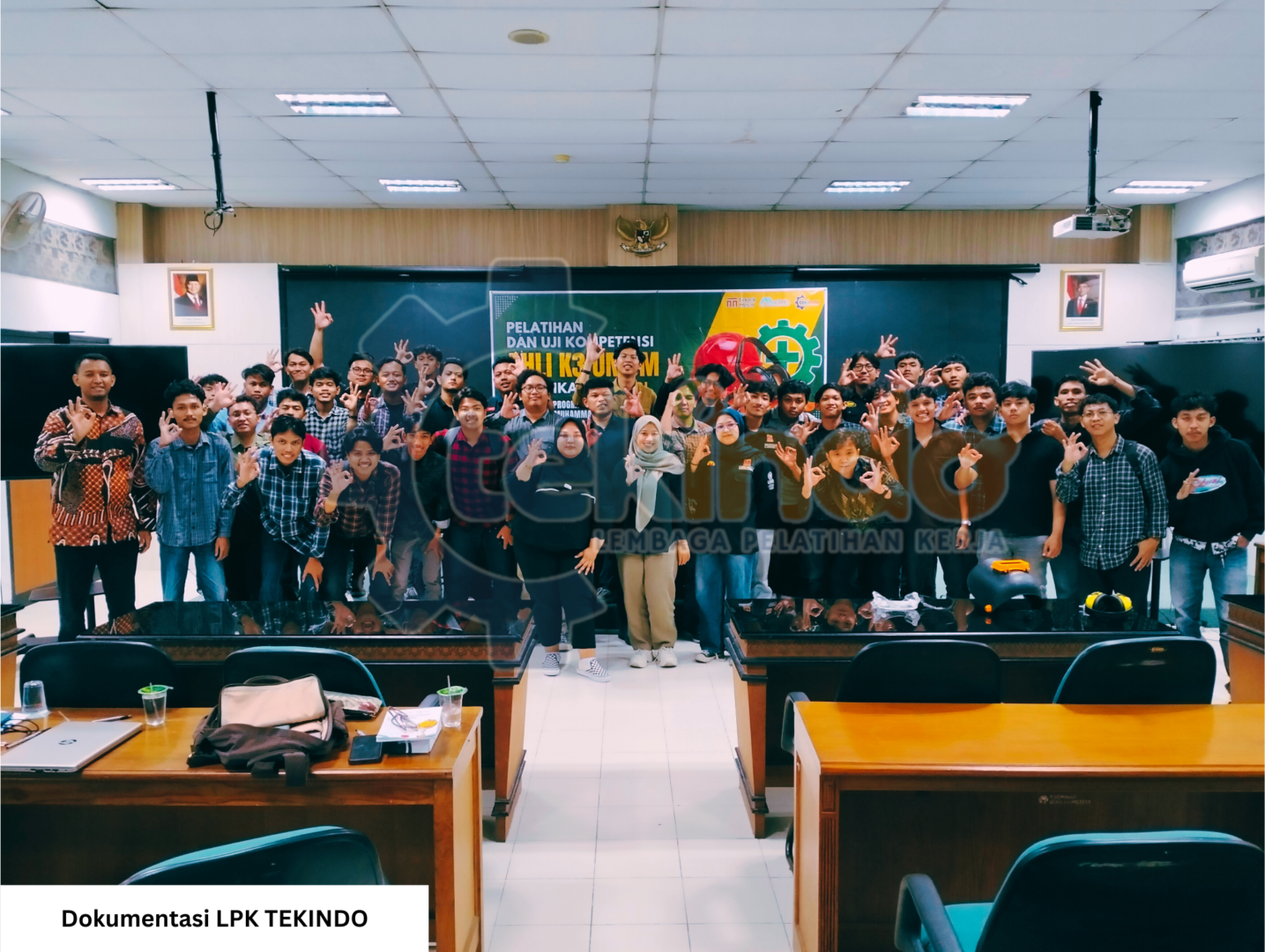 LPK TEKINDO bekolaborasi dengan Program Teknik Mesin Universitas Muhammadiyah Yogyakarta, belum lama ini menggelar acara “Pelatihan dan Uji Kompetensi Ahli K3 Umum Sertifikat BNSP RI” bersama mahasiswa dan Karyawan Universitas Muhammadiyah Yogyakarta. Kegiatan yang dilaksanakan di akhir tahun 2024 ini digelar di Gedung Siti Walidah Lt.2, Ruang Stadium General UMY pada tanggal 26 sampai dengan 28 Desember 2024.. Pelatihan diikuti oleh 40 peserta yang terdiri dari 38 mahasiswa dari prodi Teknik Mesin, 1 mahasiswa dari prodi Komunikasi , dan 1 karyawan dari prodi Agribisnis.